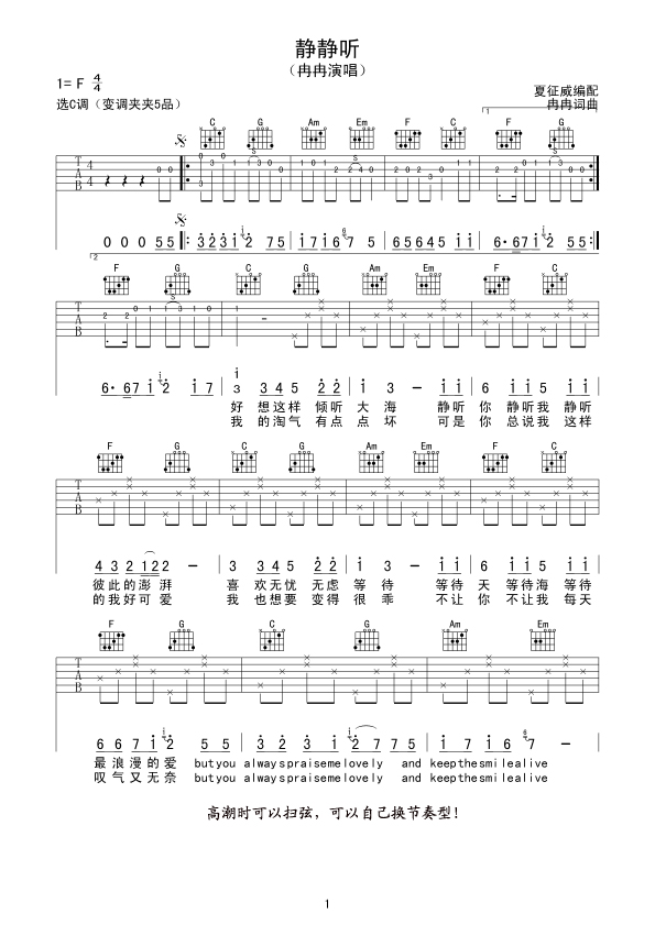 [吉他谱]静静听吉他谱 冉冉