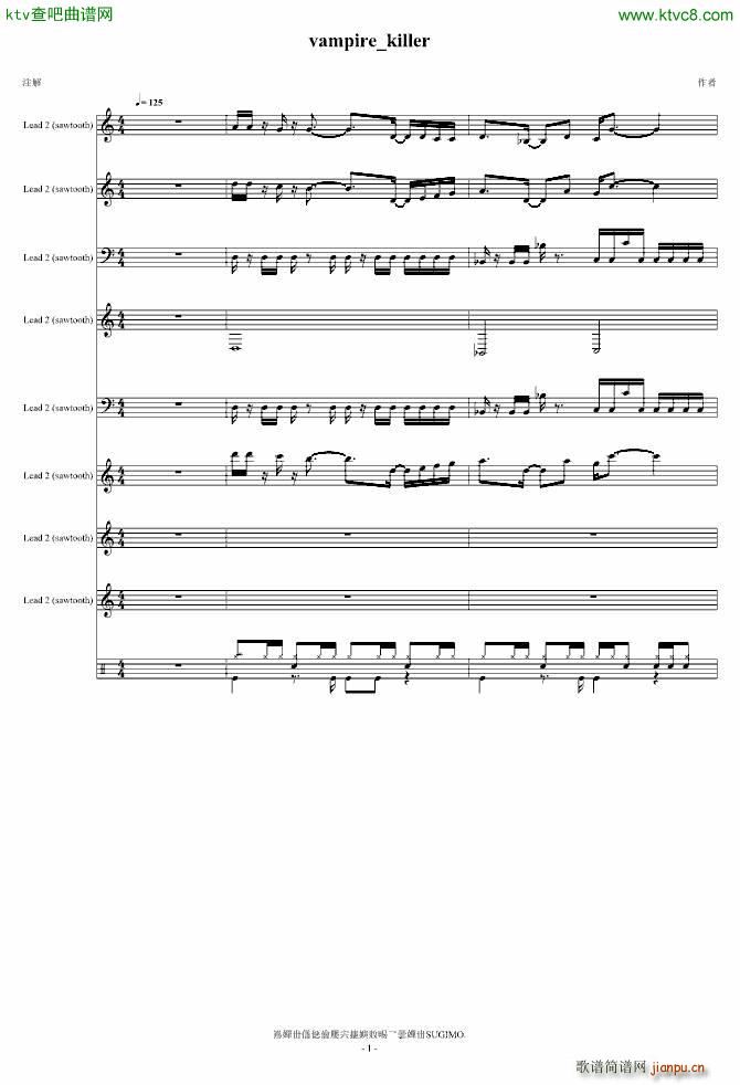 [钢琴谱]Vampire Killer 恶魔城 动漫