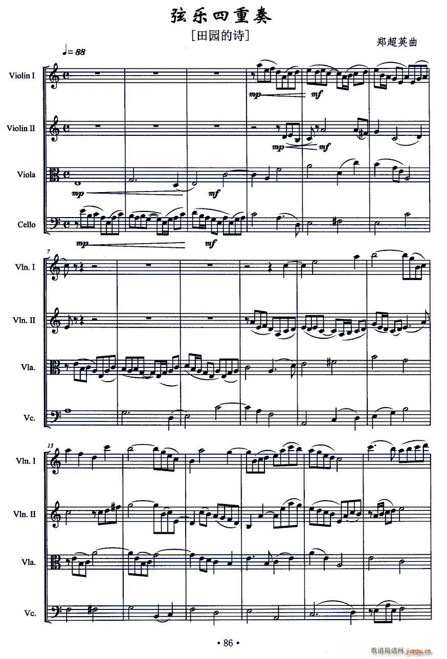 [钢琴谱]G大调弦乐四重奏 鲁晓夏