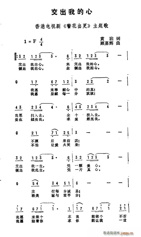 [五字歌谱]交出我的心(《警花出更》主题曲)