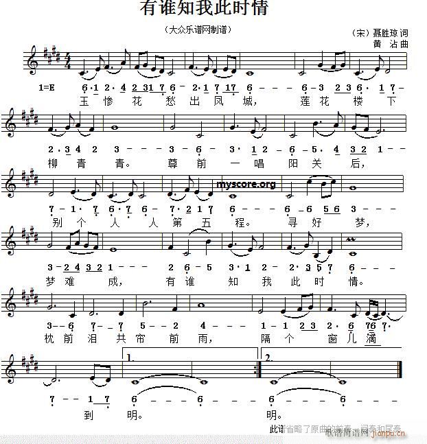 [十字及以上]有谁知我此时情(古诗歌曲 )
