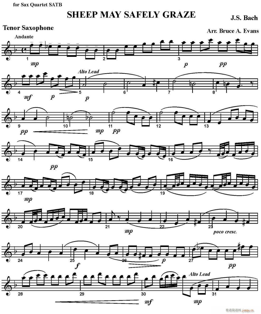 > SHEEP MAY SAFELY GRAZE(四重奏 次中音萨克斯分谱)