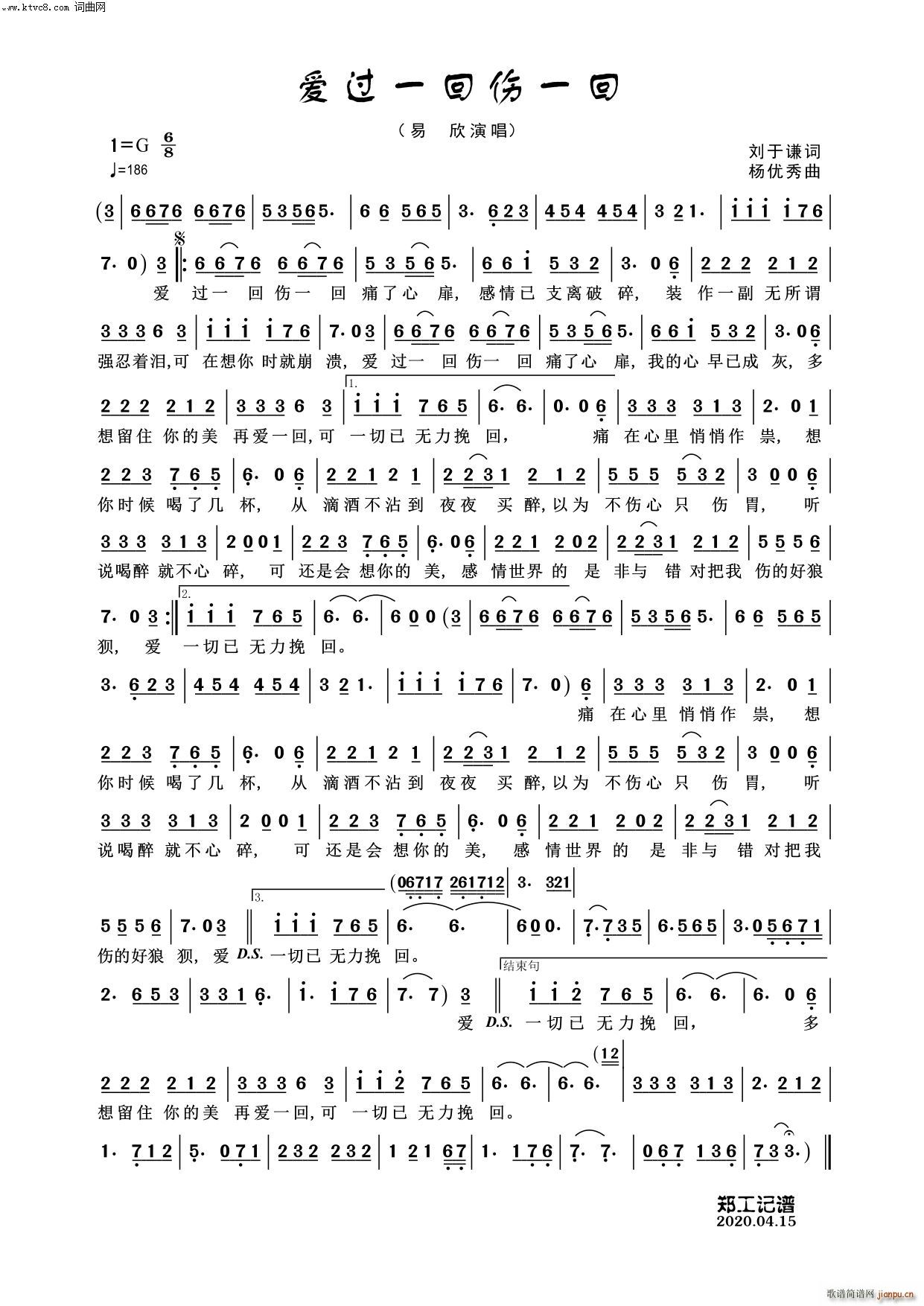[七字歌谱]爱过一回伤一回 易欣