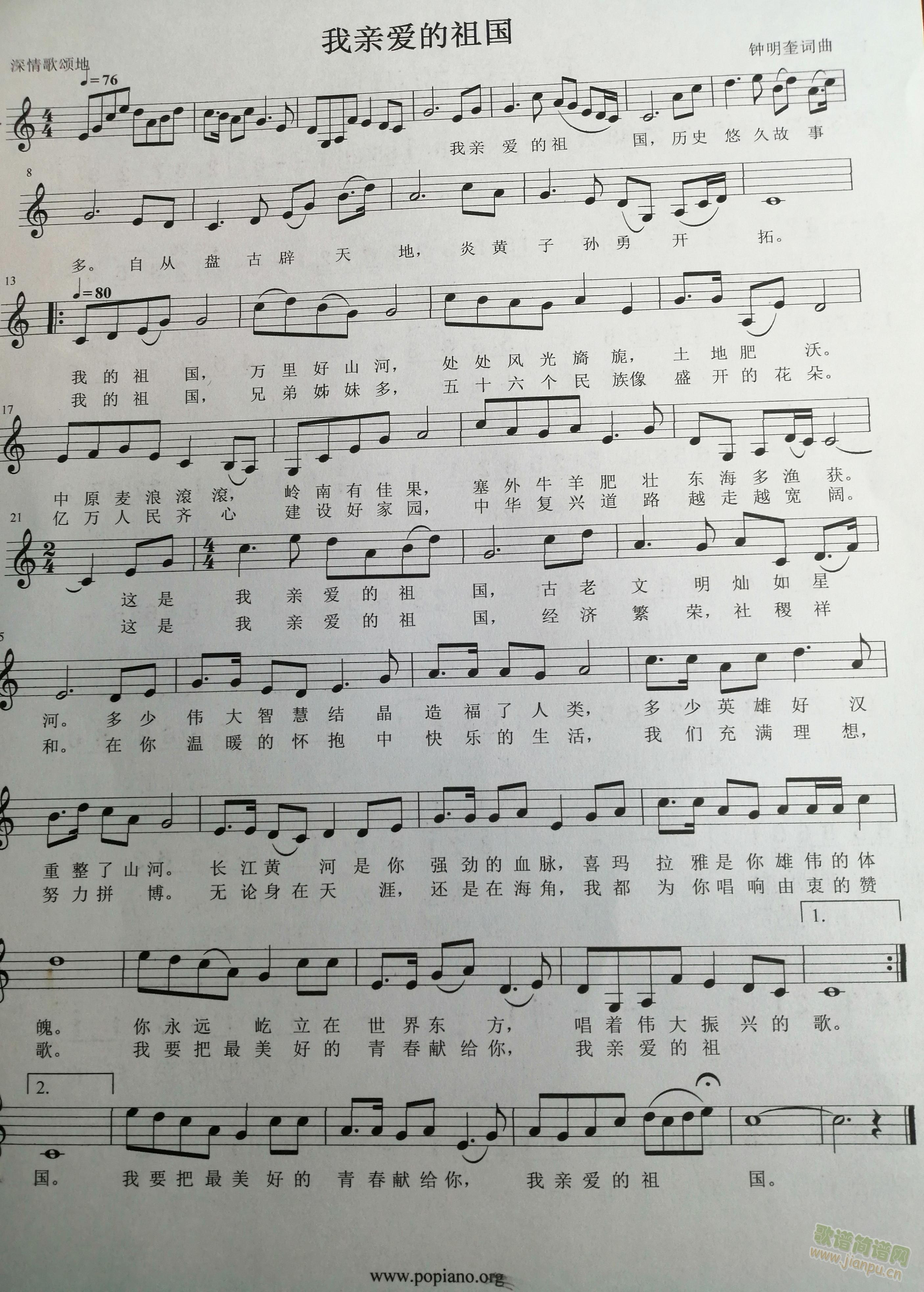 [六字歌谱]我亲爱的祖国 钟明奎词曲